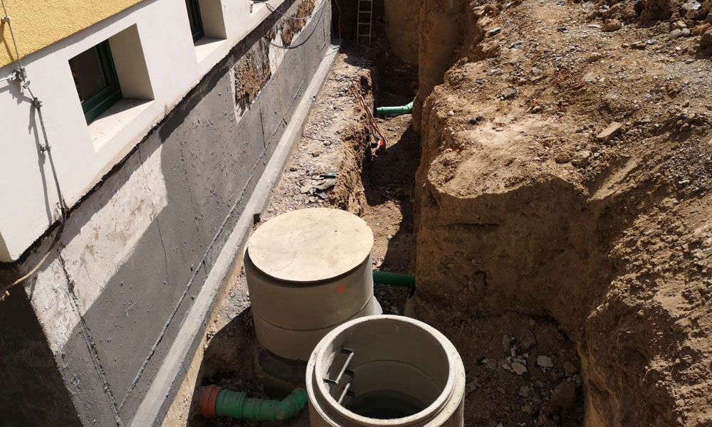 Gebäudeabdichtung und Erneuerung der Entwässerung im Bestand
